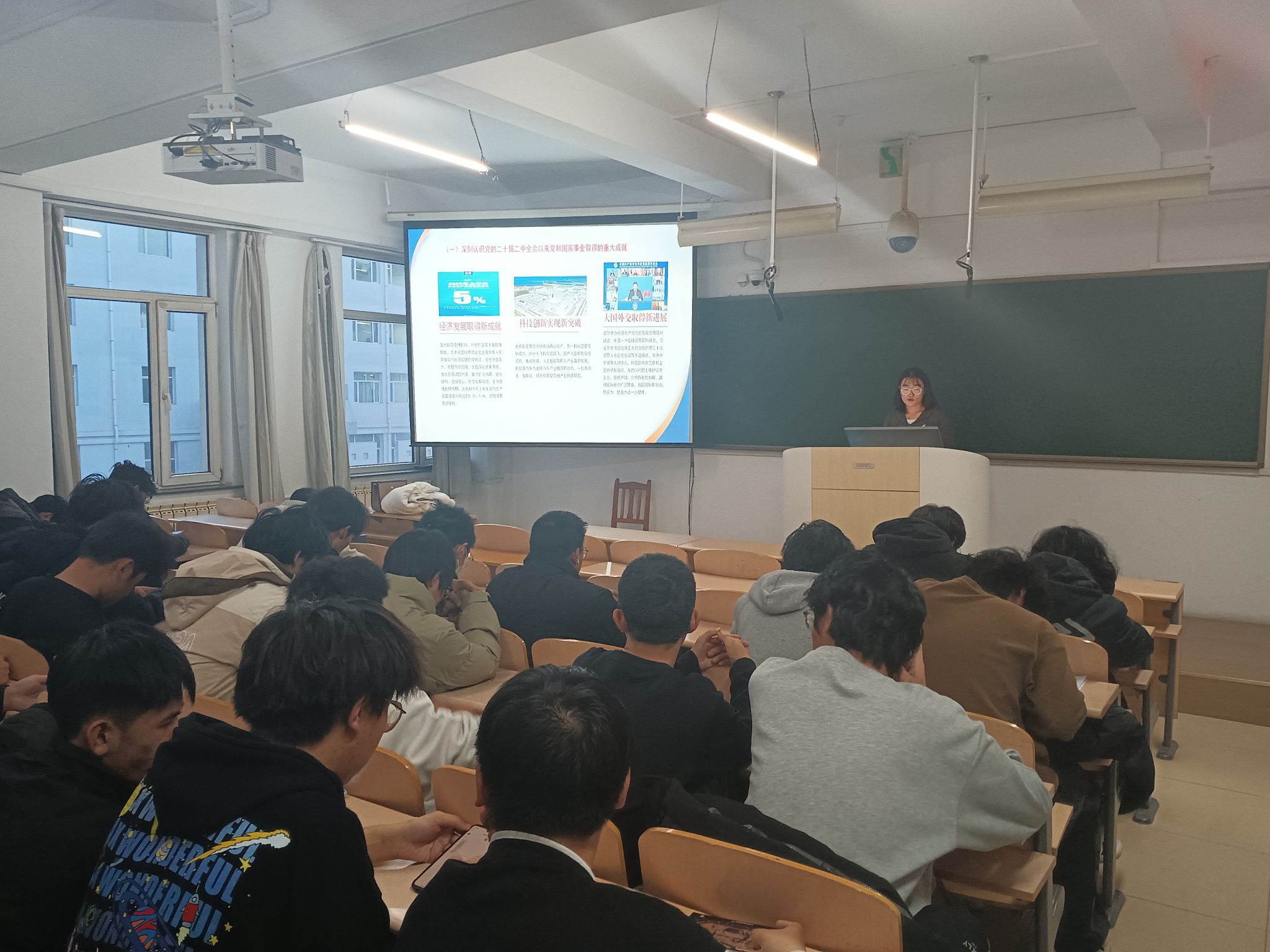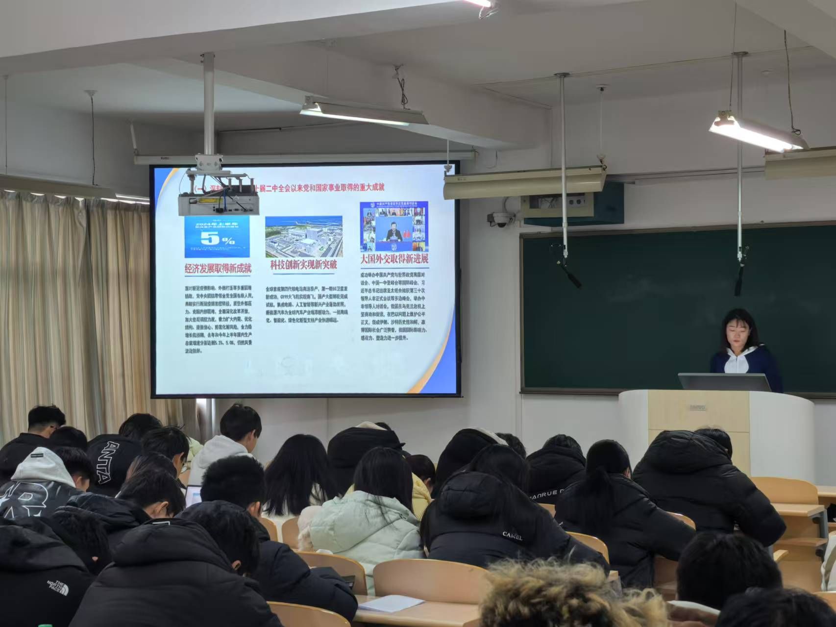 宣讲团成员深刻阐述了二十届三中全会的重大历史意义和深远现实影响,强调了此次会议对于国家发展、民族复兴以及青年成长的关键作用,用生动的案例和详实的数据展现了国家在科技创新驱动、产业结构优化升级等方面的坚定决心和积极成效,让同学们清晰地认识到时代赋予的机遇与挑战,激发了大家在专业学习中追求卓越、立志为国家经济建设贡献力量的豪情壮志。