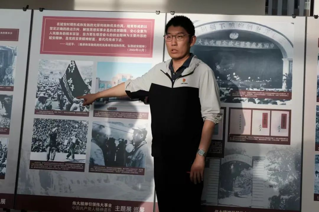 韩聪一同志围绕“伟大精神引领伟大事业——中国共产党人精神谱系”主题展,展开了丰富且深刻的党史内容讲解。公司党委副书记冯佃臣同志作为嘉宾与同学们一起全程专注聆听,使现场学习氛围更加浓厚热烈。