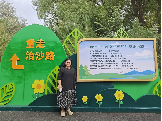 参观过程中志愿者们了解到林场的发展历程,林场始建于1960年,土地面积5.2万亩,建场前该区域以沙丘荒滩盐碱地为主,目前林场森林覆盖率达到65%。我们见证了北疆儿女不断为保护生态环境努力前行,一代代种林人、守林人、护林人的辛勤劳苦,他们的精神深深震撼着在场的每一位同学,志愿者们将继续发扬吃苦耐劳精神,为保护生态环境建言献策。