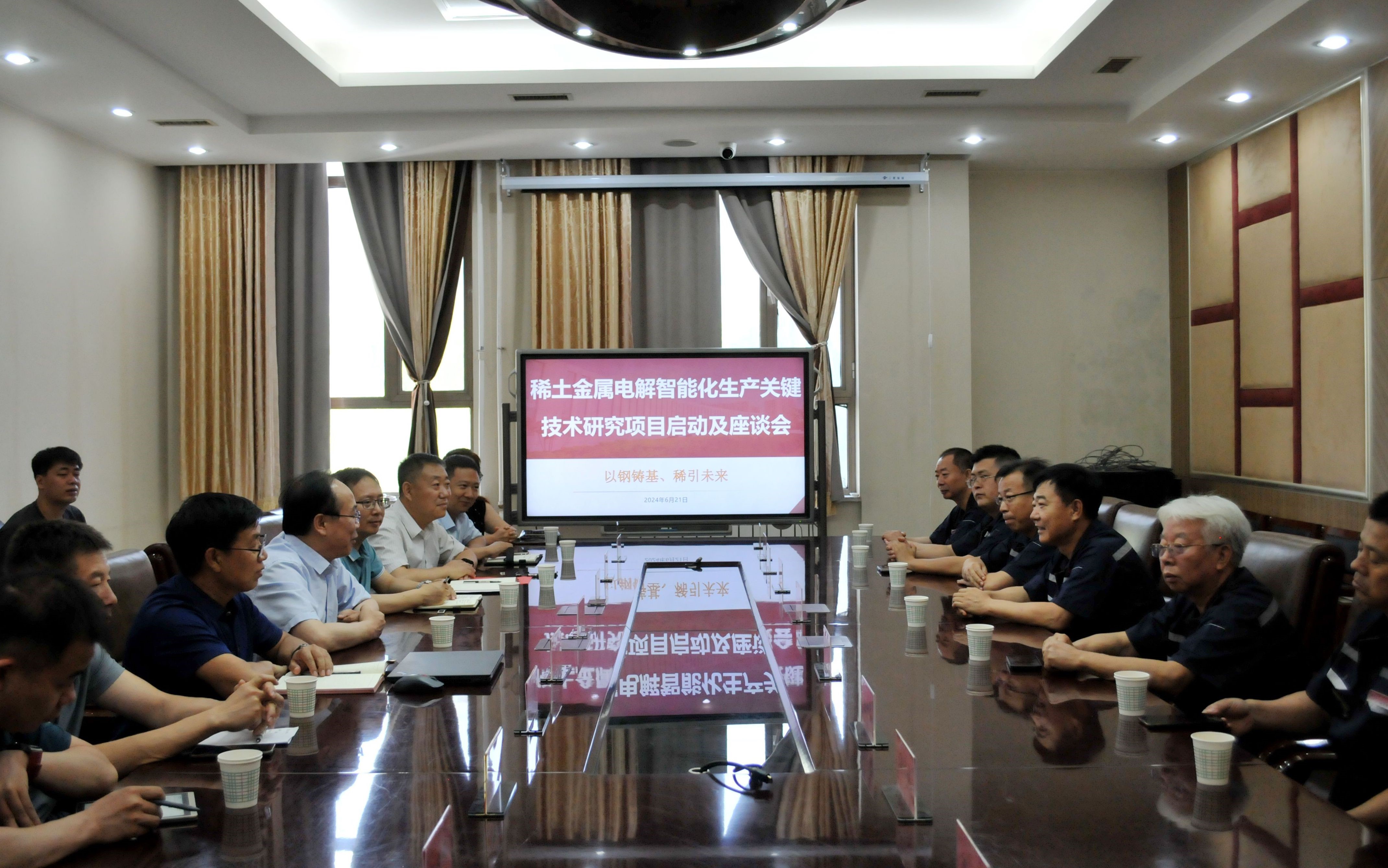 座谈会上,双方重点就科研平台共建、校企合作协同育人,“稀土金属电解智能化生产关键技术”展开了深入交流与探讨,并对稀土金属电解关键技术达成共识,期待接下来合作的美好成果,会后参会人员进行合影留念。