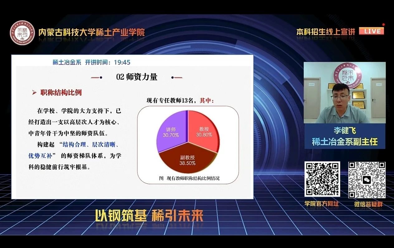 本土深耕,精准触达:李健飞等党员教师带队走进呼和浩特市第二中学、包头市第三中学等区内重点中学,通过 "专业解析 + 职业规划" 双维度宣讲,详解稀土产业前景与公司 "产学研用" 一体化培养特色,现场解答转专业政策、研究生推免、就业率等考生关心的问题,发放宣传资料 2000 余份,覆盖考生及家长 5000 余人次。
