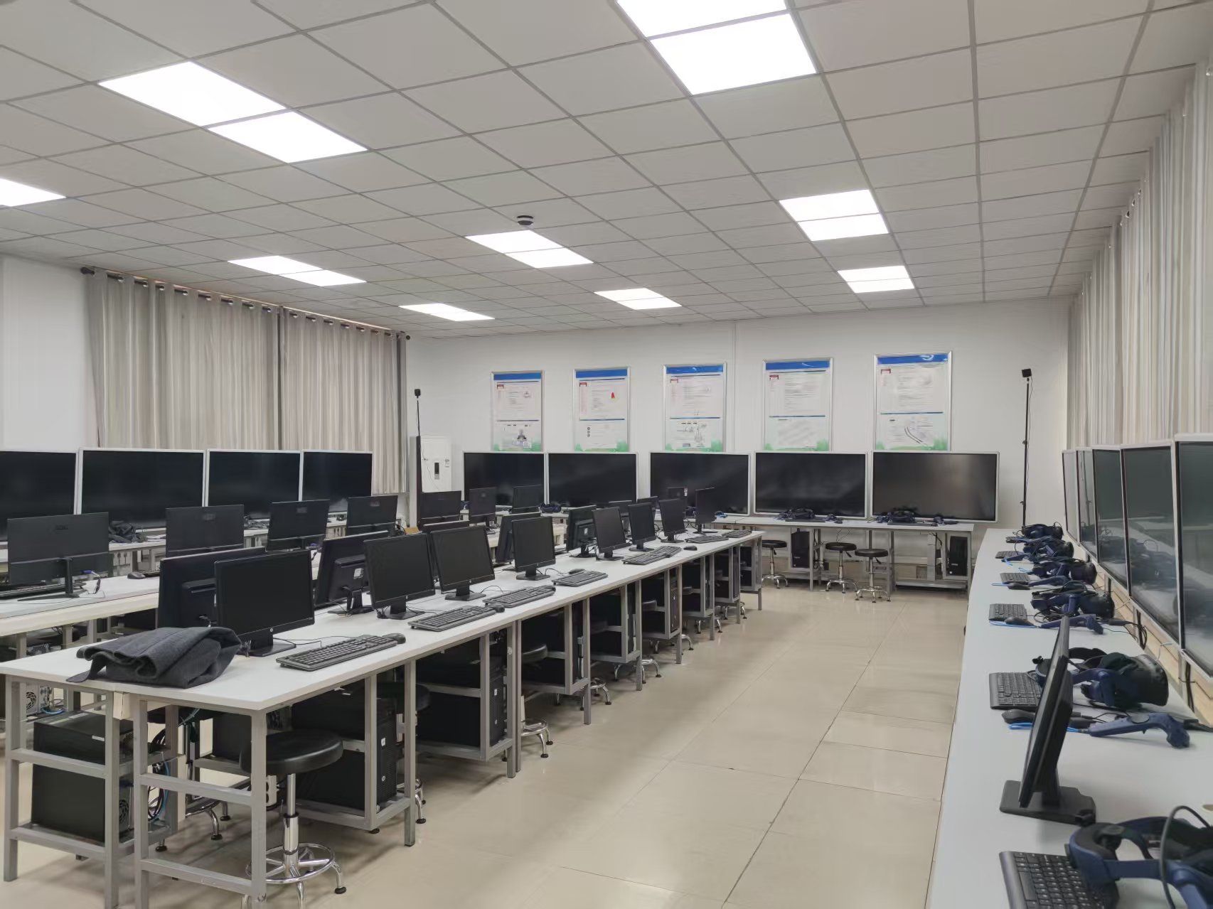 设备情况:84台电脑,一套由四台投影仪组成的大型环屏投影装置,一套交换机。可同时保证40位同学上机(每个员工同时使用两台电脑,一台操作控制机,一台虚拟场景。